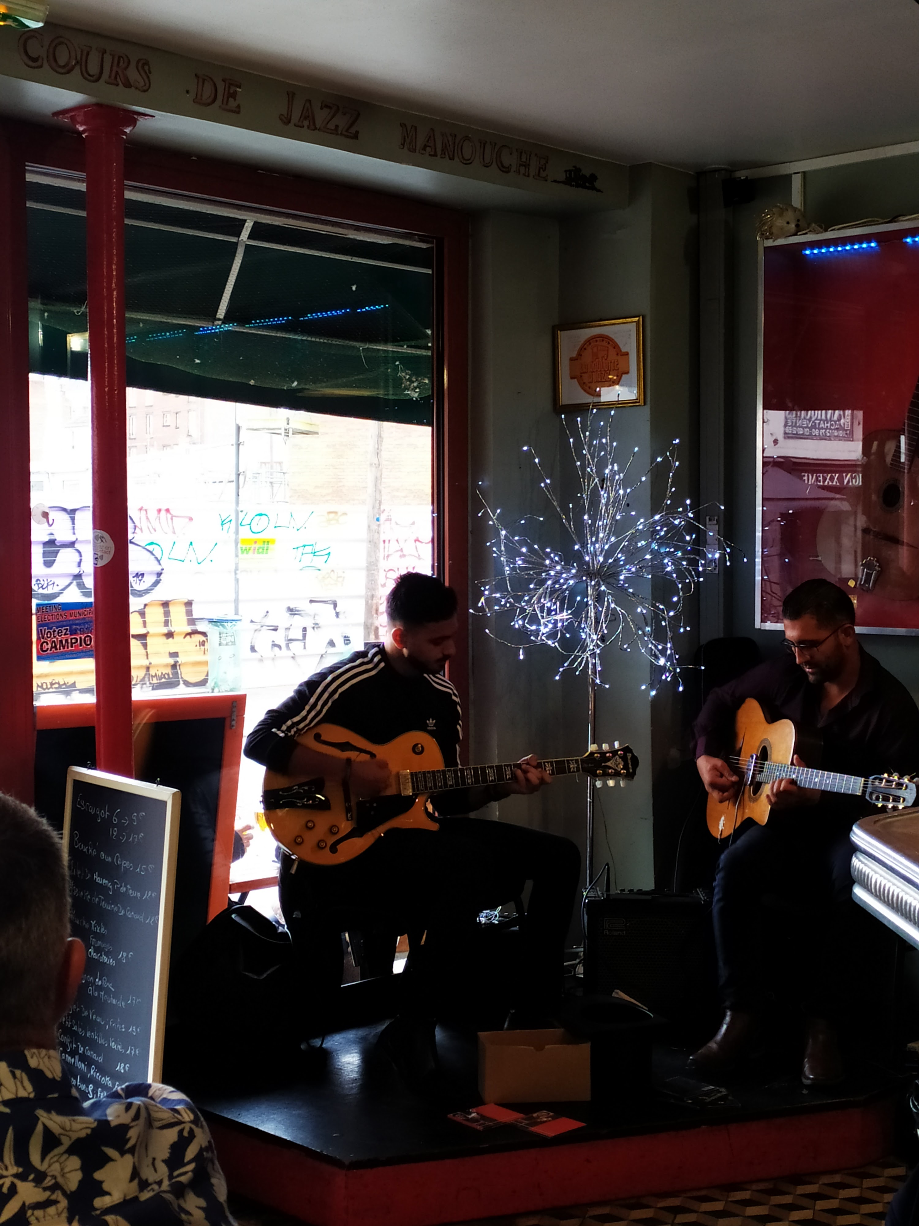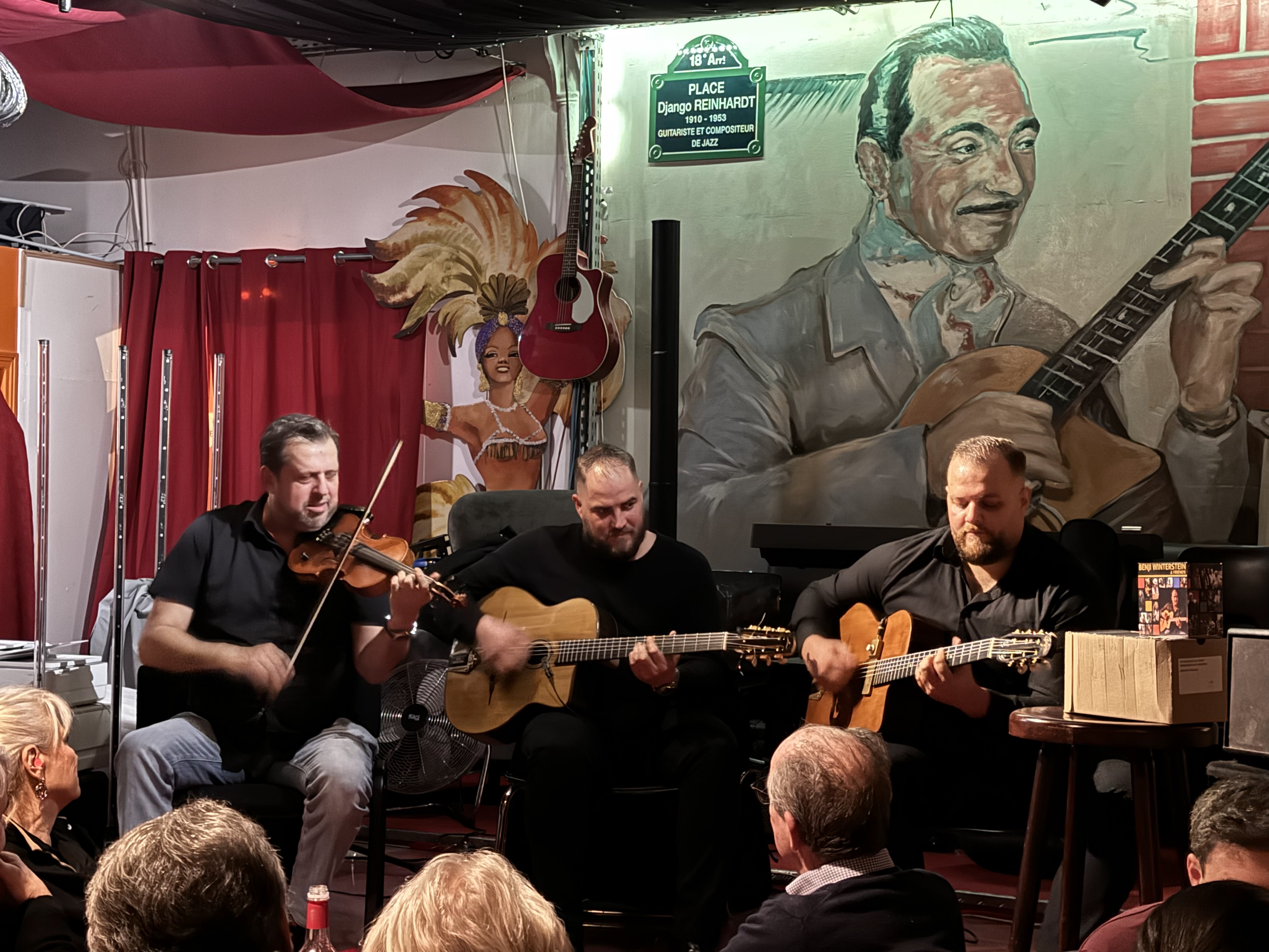 LES MUSICIENS SONT D'UNE GRANDE QUALITE. QUAND J'Y SUIS ALLE IL Y AVAIT LES FRERES KRIEF A LA GUITARE ET UN SAX. UNE MAESTRIA SANS PAREIL DANS UN LIEU MYTHIQUE DU JAZZ MANOUCHE COUREZ-Y CA FAIT DU BIEN A L'AME.