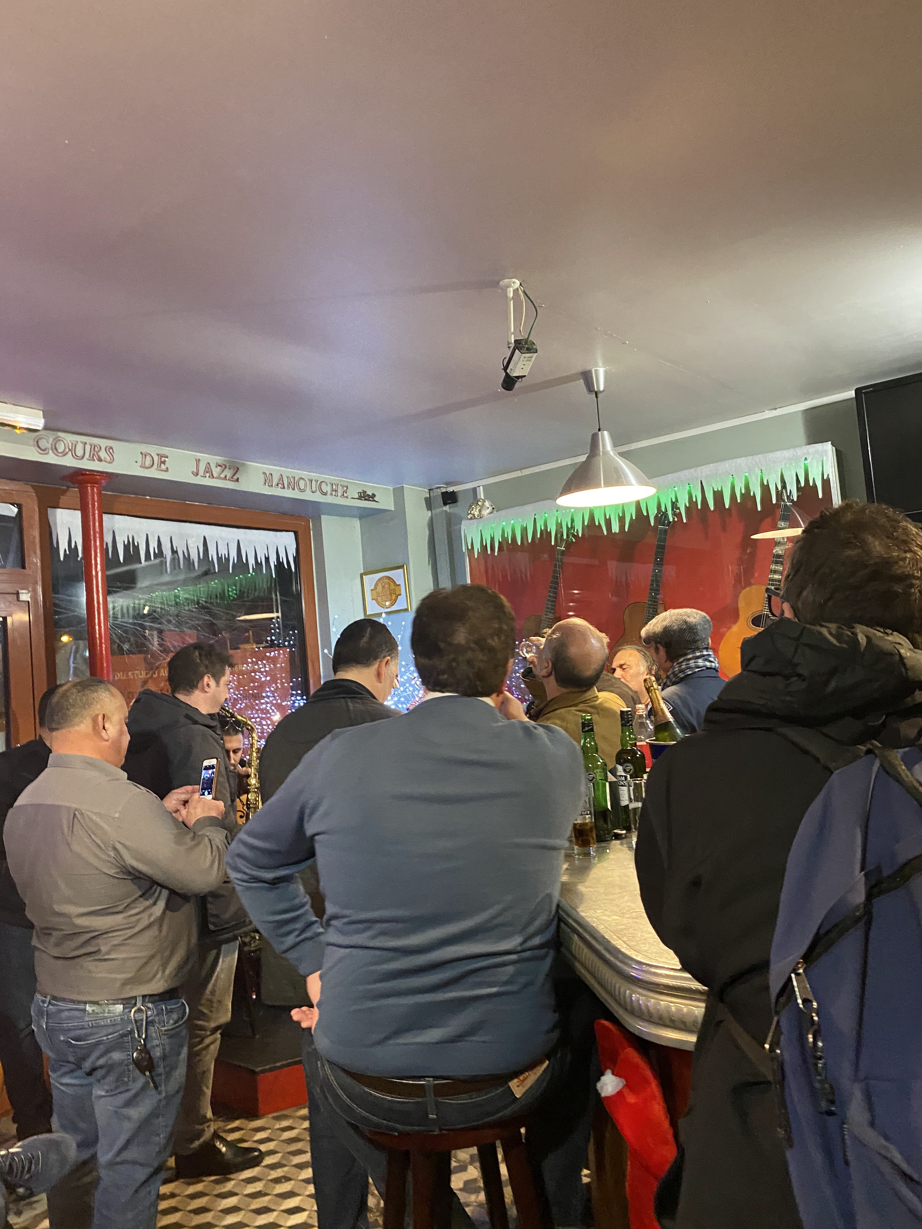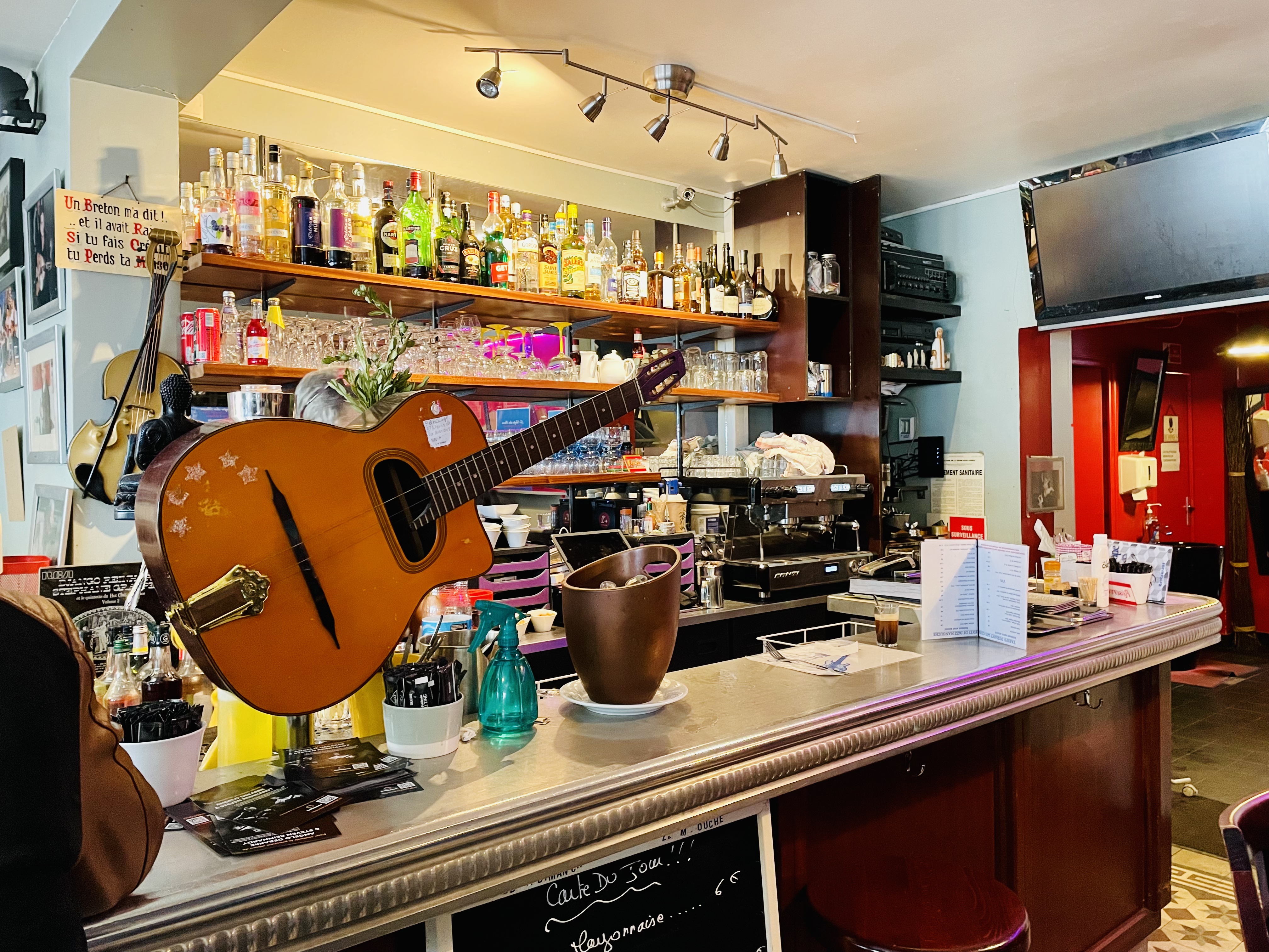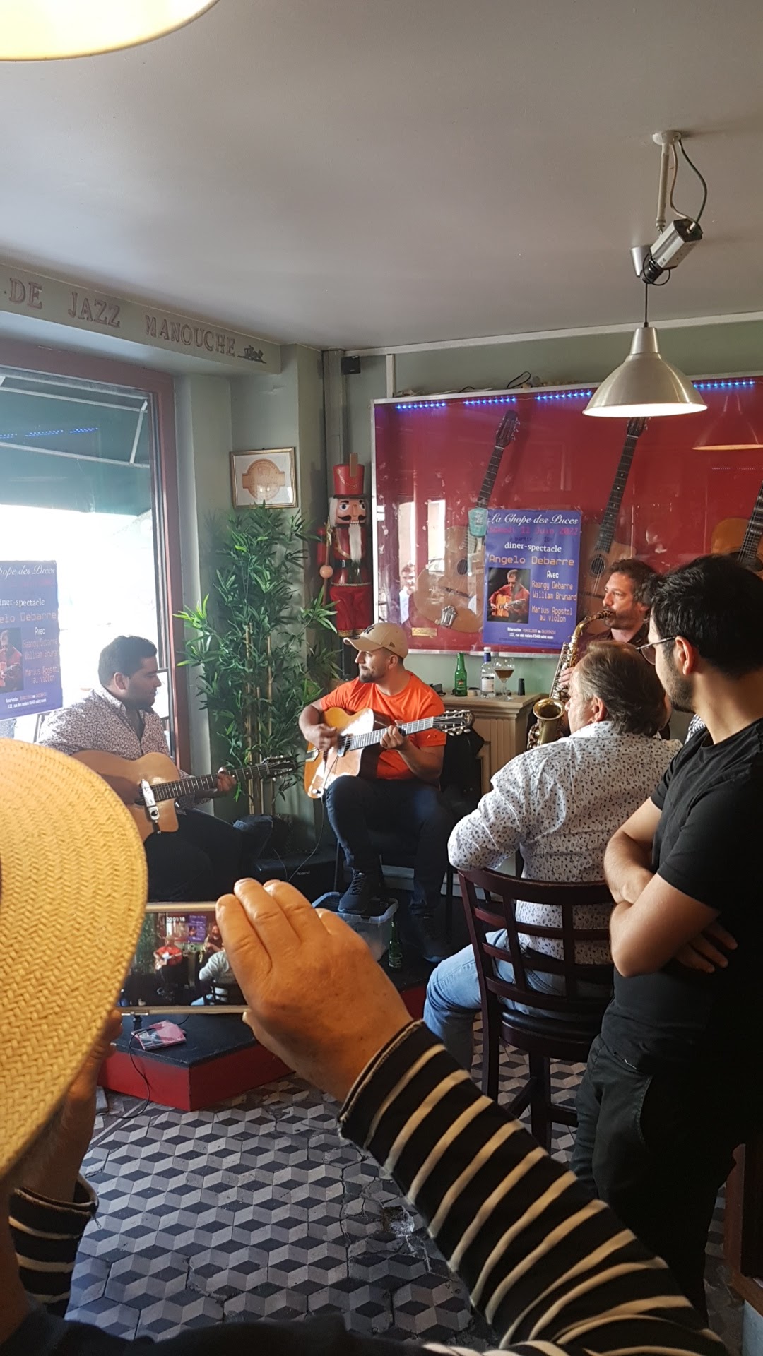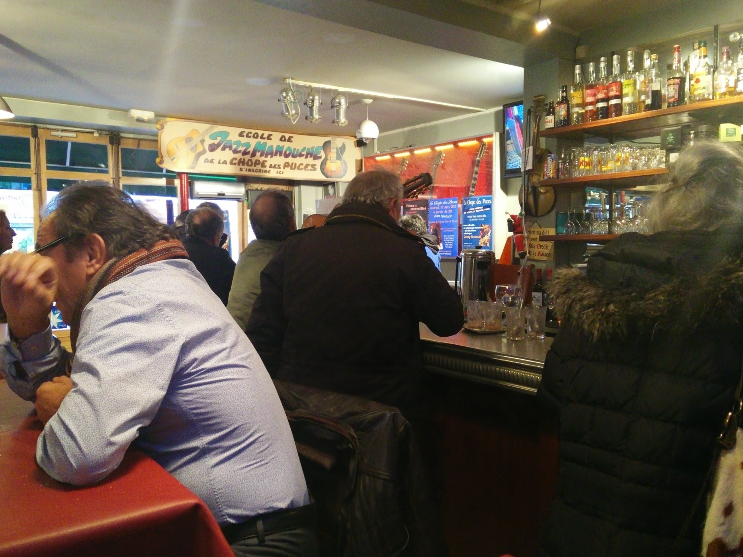 Vous aimez la musique et la chaleur et l'humanité que certaines dégagent. Alors passez à la chope. Pour simple verre vous serez transporté dans un univers comme il existe peu. Et làc'est aussi une autre époque. On prends le temps, de vous installer, de vous parler, de jouer de la musique et de l'écouter. Petit zinc, murs recouverts des affiches et photos des musiciens passés et présents. Il peu y avoir de tout, mais c'est qd même un temple pour le jazz manouche avec toutes ses influences. Samedi 12/01/19 c'était Ninine et Rocky GARCIA. Une complicité des liens du sang et du plaisir de jouer ensemble des heures. Technique et sensibilité . Des maîtres de ce style et de bien d'autres. Merci.