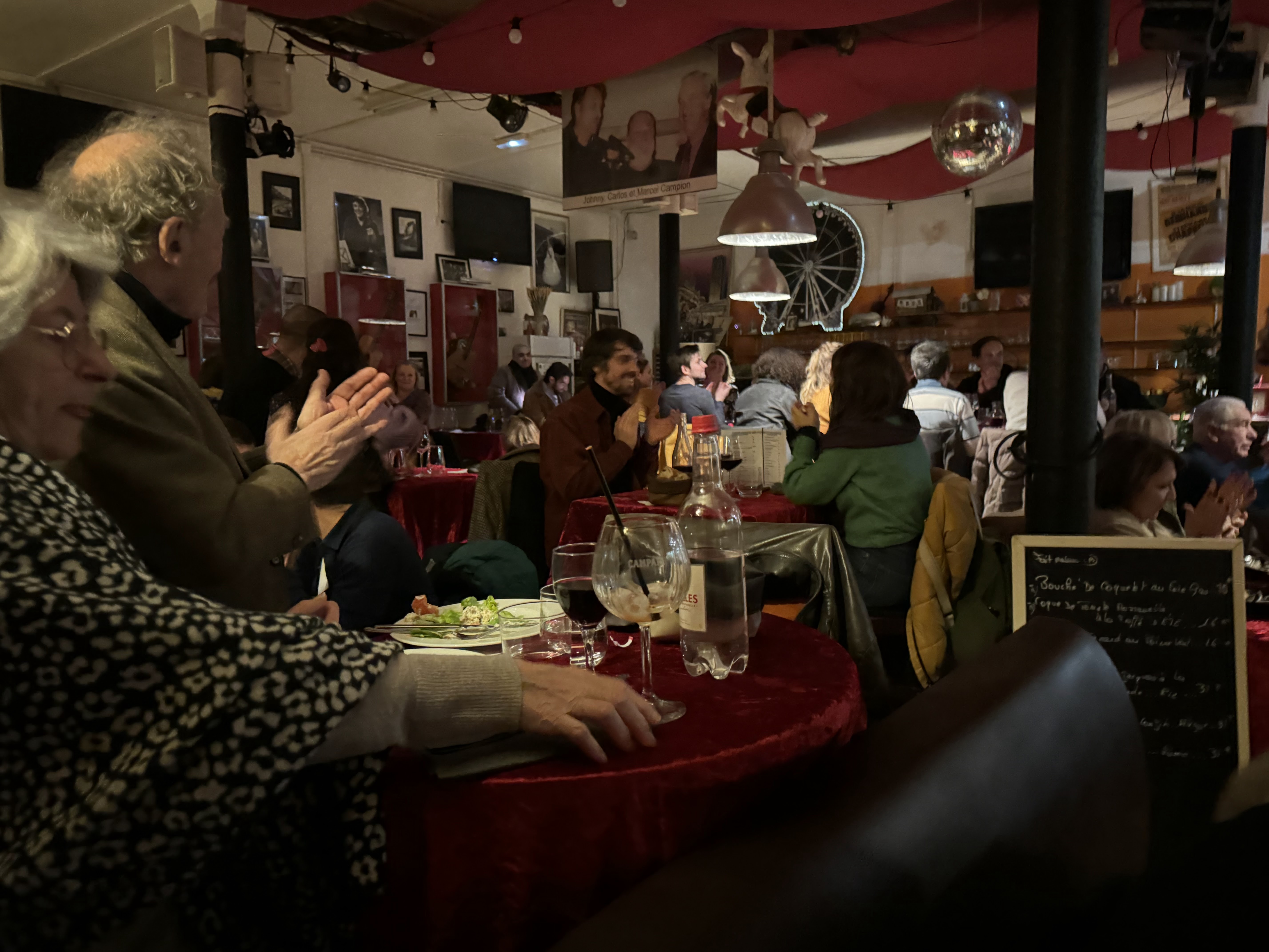 La salle où se déroule l’action principale est très petite. Les boissons mettent du temps à arriver. Rien n’enlève à la musique divine qui y est jouée. C'est véritablement un temple du Jazz Manouche. J'ai pleuré aussi. J'aimerais pouvoir y aller une fois par semaine. Merci de perpétuer la tradition !