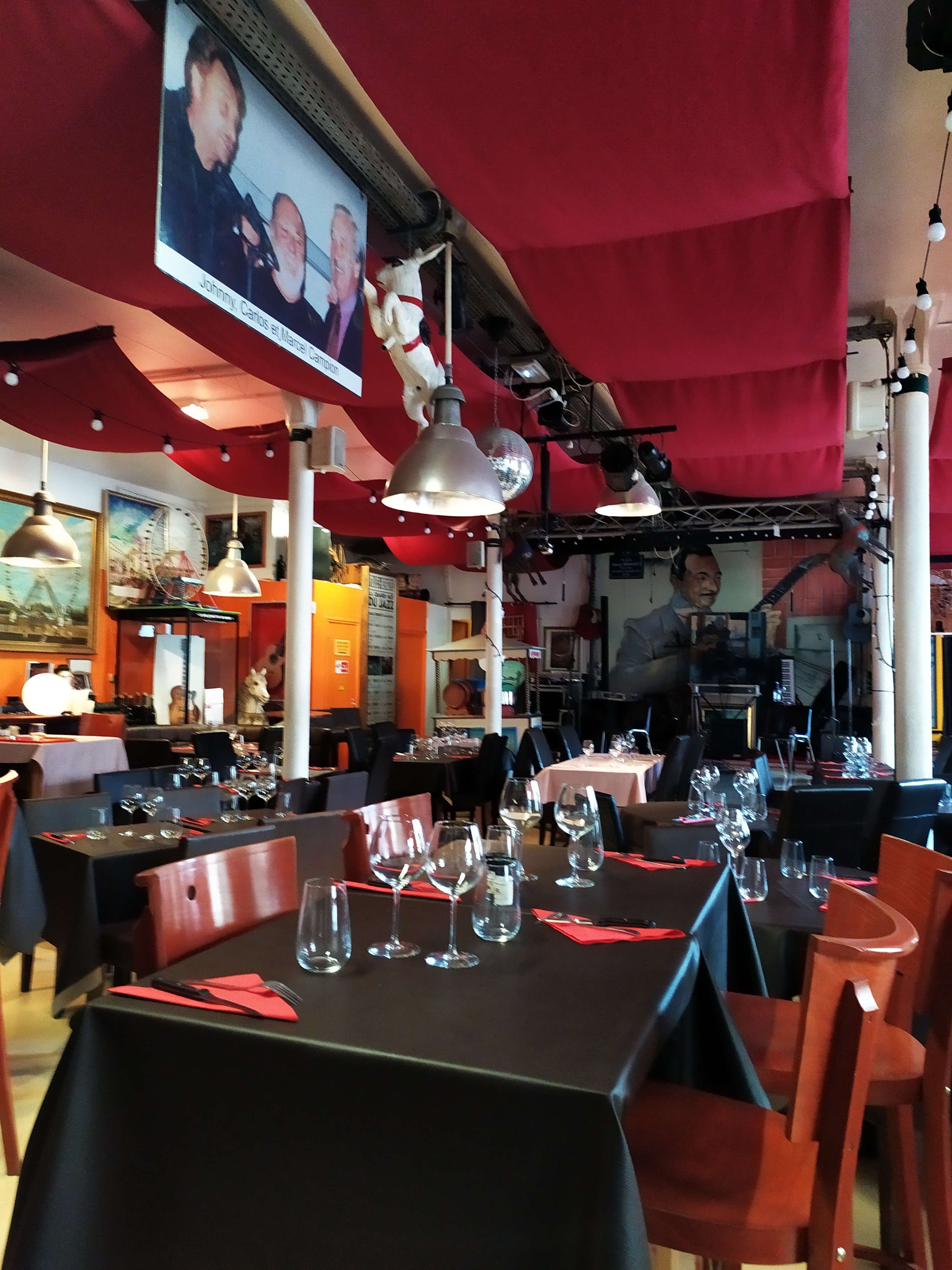 Nous sommes venus d'Alsace pour ce mythique Lieu. L'accueil est très chaleureux et la déco originale. Si vous voulez passer un bon moment, ne soyez pas radin et ajoutez le prix d'une entrée à un concert de Jazz : 25-30 euros à votre budget boisson ! Nous ne mettons pas 5 étoiles, car il manquait un peu de salade-légumes avec la côte de boeuf géante ;) Nous reviendrons avec plaisir.